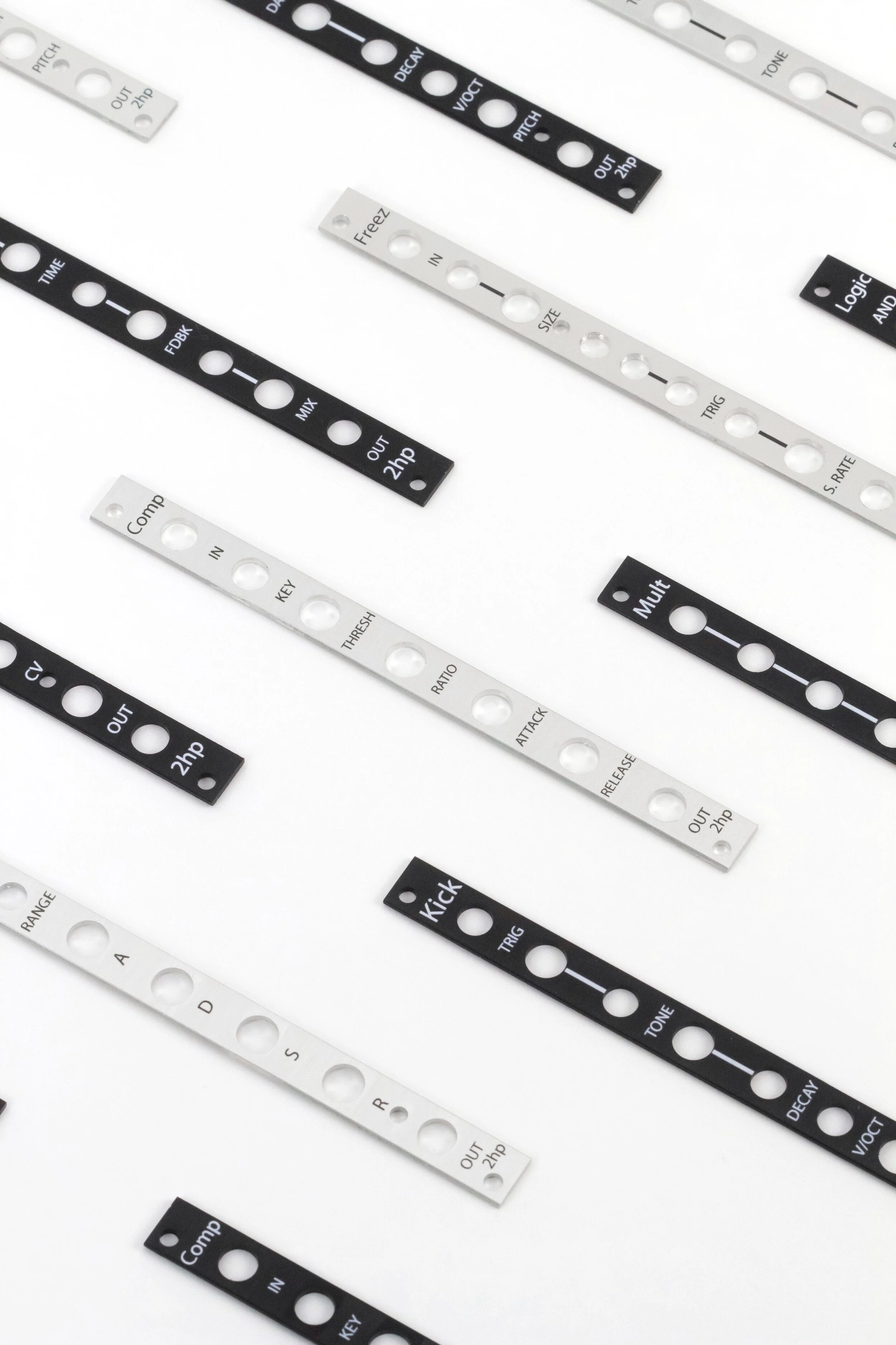 All 2hp Patch Cables from $14.99 Zero HP Mult $7.99 Flying Bus Cable $14.99 Replacement Front Panels $15.00 Blanks $20.00 Power Cables $0.99 Mounting Screws - Bag of 50 $6.99 UPS Shipping $35.00